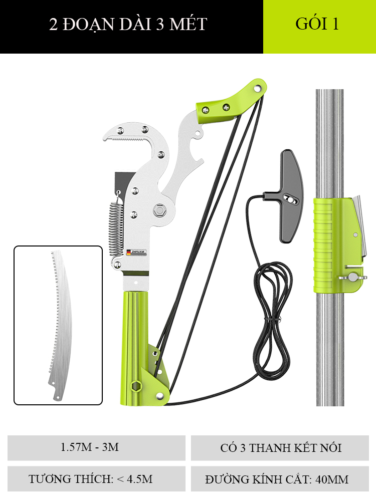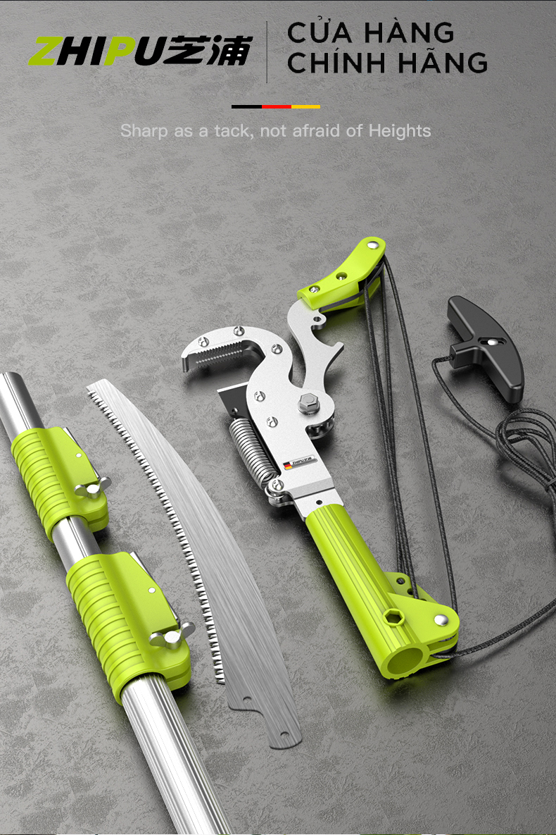 Kéo tỉa cành cao sử dụng kết hợp cùng dây cắt và cưa cắt lên tới độ cao 7.5m – Một sản phẩm của Zhipu